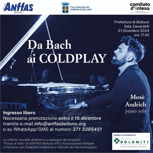 Un concerto di Natale per Anffas Belluno Aps con il pianoforte di Mosè Andrich!